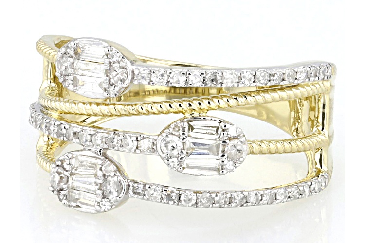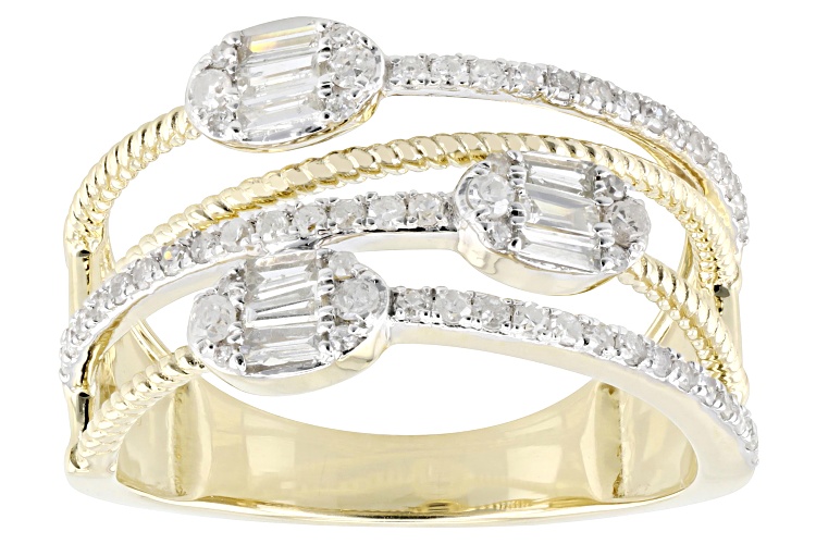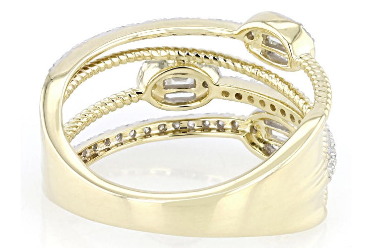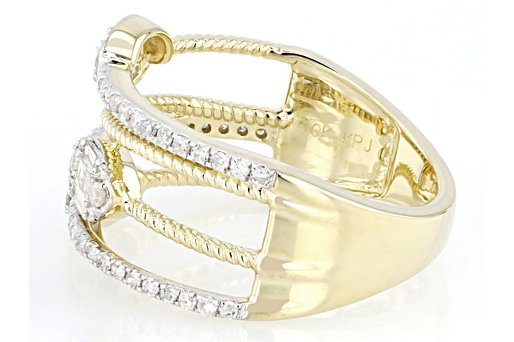 • 0.50ctw Round And Baguette White Diamond 10k Yellow Gold Open Design Wide Band Ring - Size 5