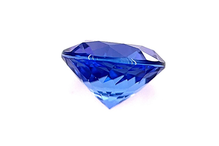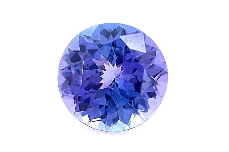 Tanzanite 2.15ct 8mm round. The gemstone was mined in Tanzania and cut in India.