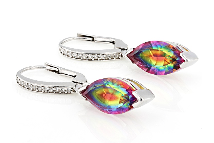 5.04ctw Marquise Rainbow Quartz Doublet with 0.12ctw Round Lab Created White Sapphire Rhodium Over Sterling Silver Earrings. Measures Approximately 1.34"L x 0.28"W. Lever Backings.