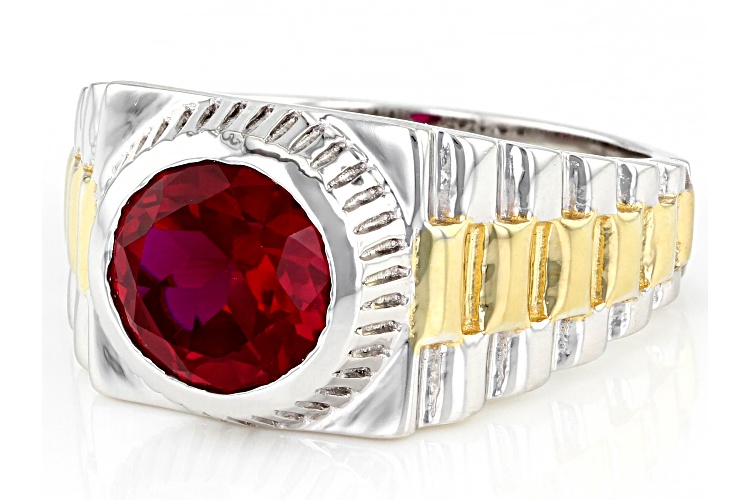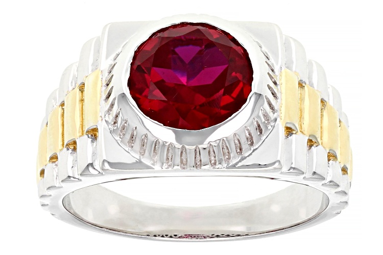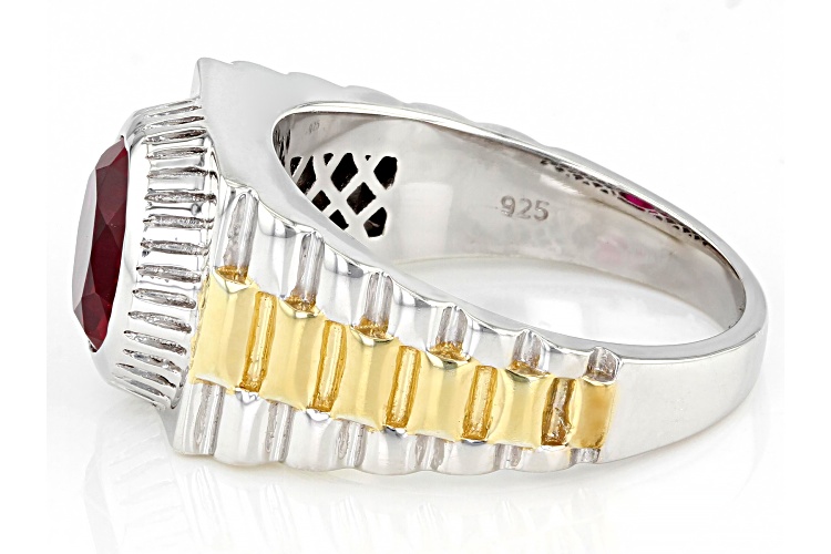 • 2.55ct Round Lab Created Ruby Rhodium Over Sterling Silver Two Tone Men's Ring - Size 12