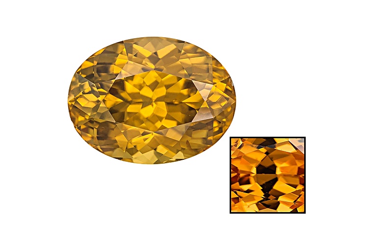 Tanzanian Thermochromic yellow zircon 10.71ct 13.74x10.44mm oval. The gemstone was mined in Tanzania and cut in India. The color will vary from stone to stone. CAUTION: Prolonged heating or exposure to temperatures above 500 Degrees Fahrenheit will permanently destroy thermochromic property.