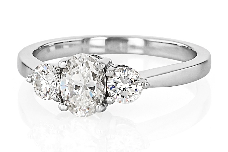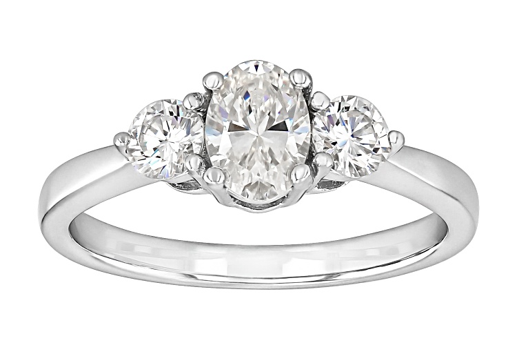 • .94ct Oval And 0.68ctw Round Strontium Titanate Rhodium Over Sterling Silver 3-Stone Ring - Size 10