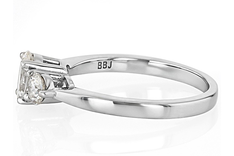 .94ct Oval And 0.68ctw Round Lab Created Strontium Titanate Rhodium Over Sterling Silver 3-Stone Ring. Measures Approximately 0.54"L x 0.27"W. Not sizeable.