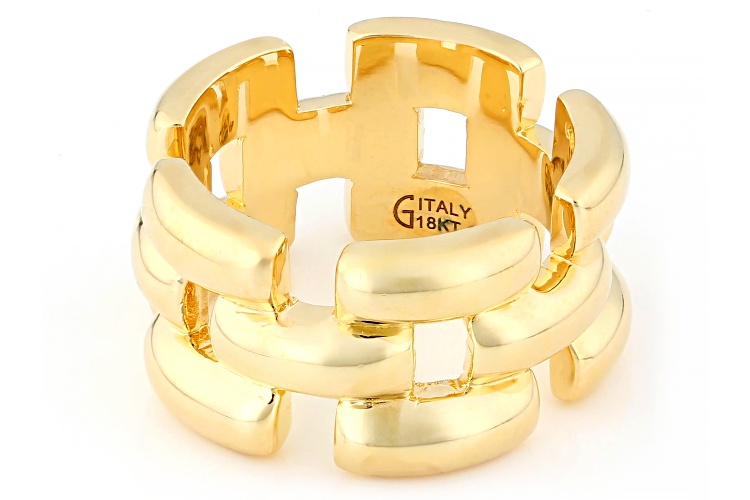 Moda Al Massimo® 18k Yellow Gold Over Bronze Panther Link Ring. Measures Approximately 7/16"W. Made in Italy.