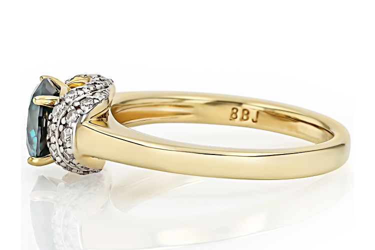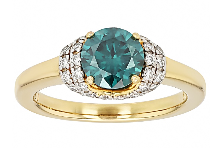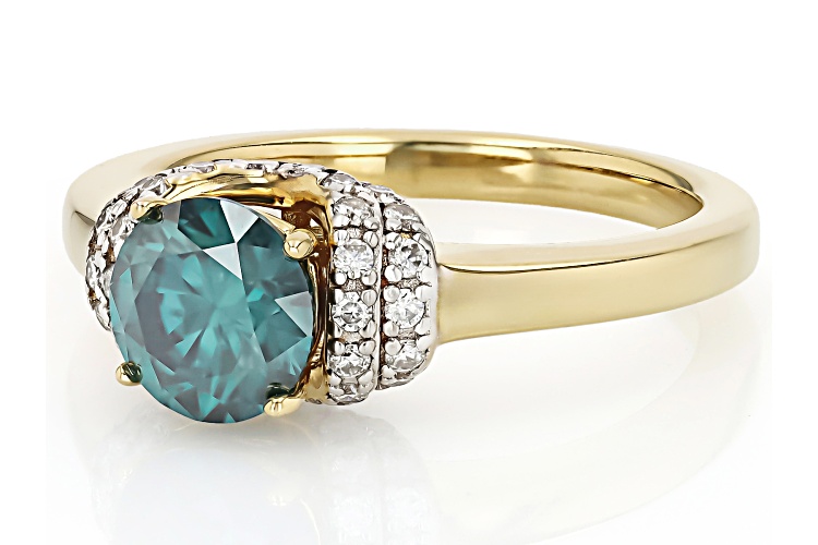 MOISSANITE FIRE® AND GREEN MOISSANITE 1.52CTW DEW ROUND 14K YELLOW GOLD OVER SILVER RING - Size 8
