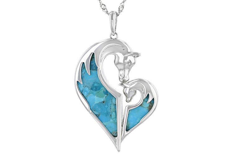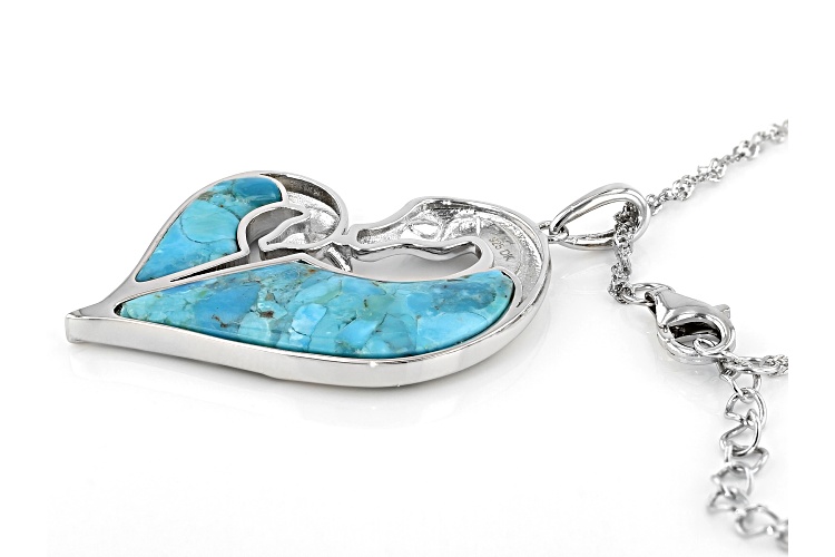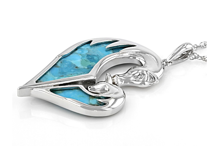 27.5x10mm And 14.4x6mm Free-form Composite Turquoise Rhodium Over Silver Horse Pendant With Chain