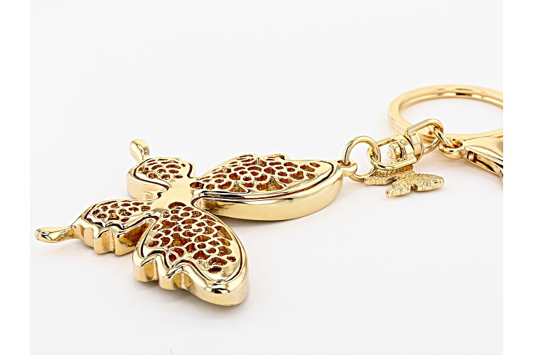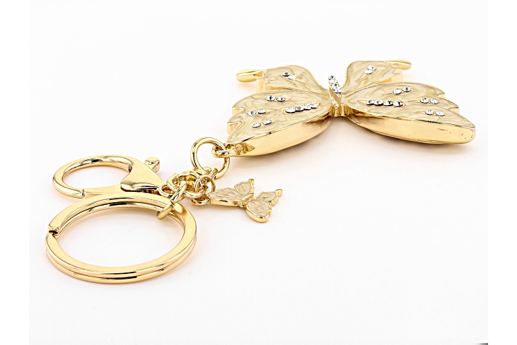 Off Park ® Collection, Round White Crystal With Champagne Color Enamel, Gold Tone Butterfly Key Chain. Measures approximately 5.00"L x "2.48W, Lobster Claw Clasp.