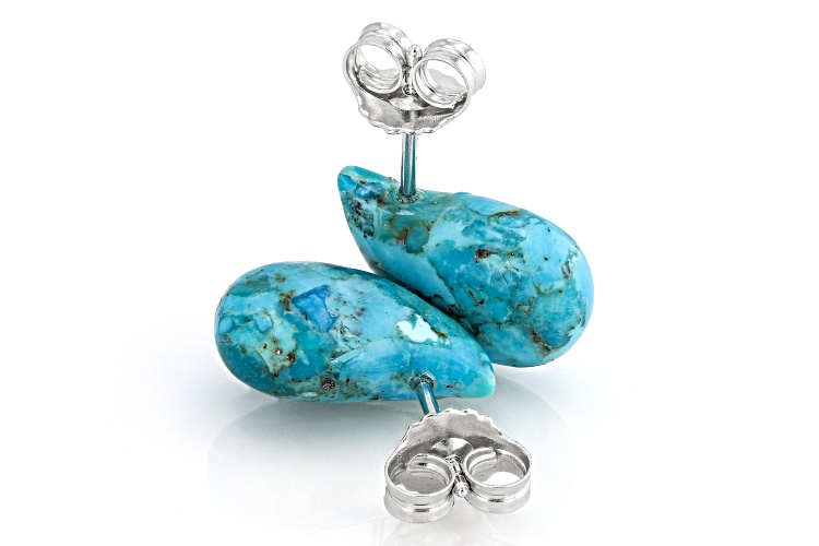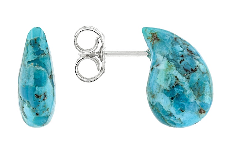 Free-Form Blue Composite Turquoise Rhodium Over Sterling Silver Tear Drop Earrings. Measures Approximately 0.68"L x 0.45"W. Push Backings. This product contains composite turquoise. This means separate pieces of turquoise were bound together.