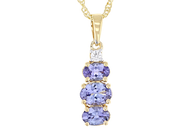 1.49ctw Tanzanite With 0.05ct White Zircon 18k Yellow Gold Over Sterling Silver Pendant With Chain