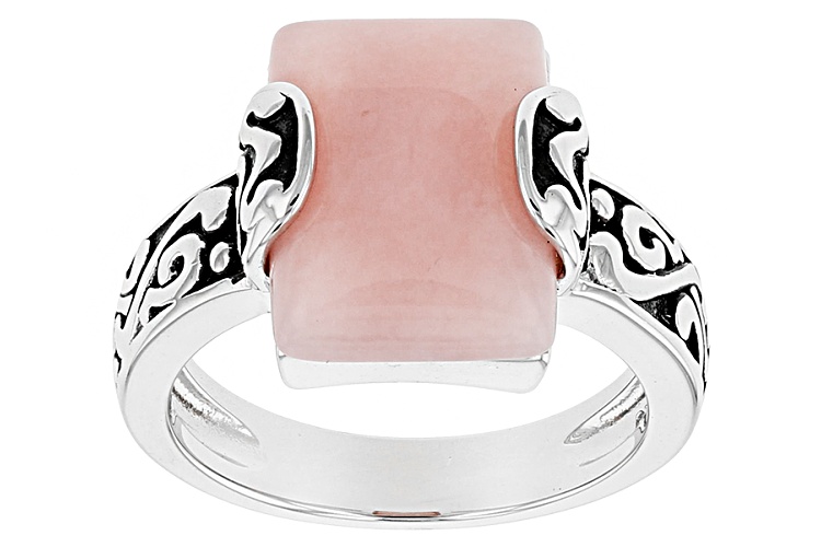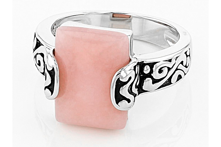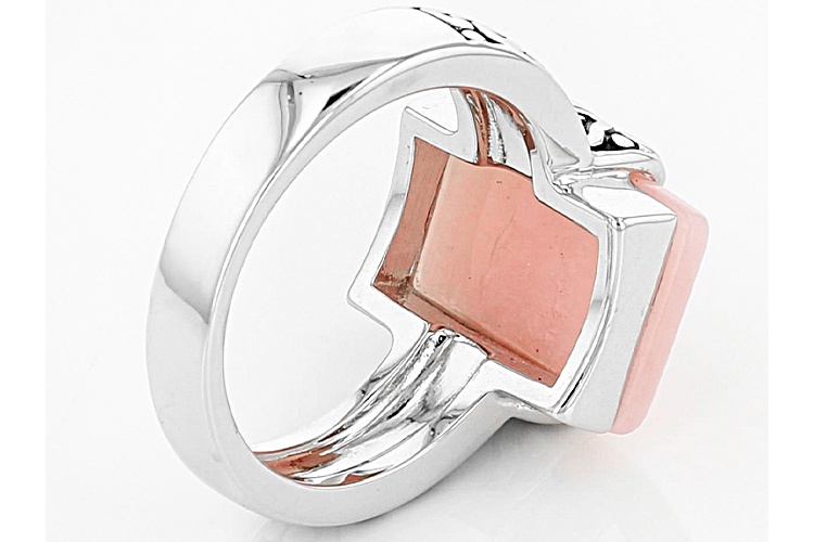 • 14x10mm Rectangular Cabochon Peruvian Pink Opal Rhodium Over Sterling Silver Ring - Size 6