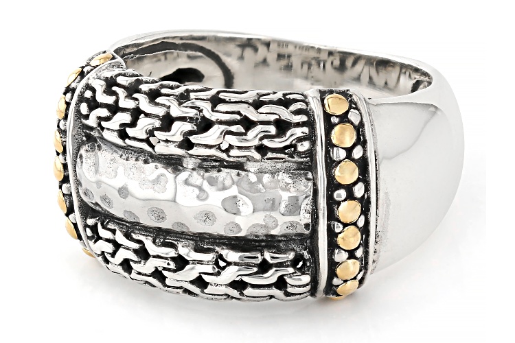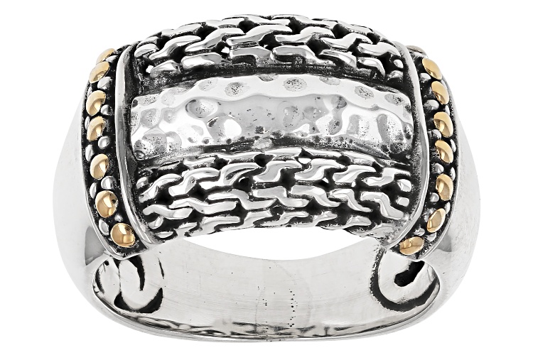 Artisan Collection of Bali™ Sterling Silver & 18K Gold Hammered & Patterned Ring - Size 9