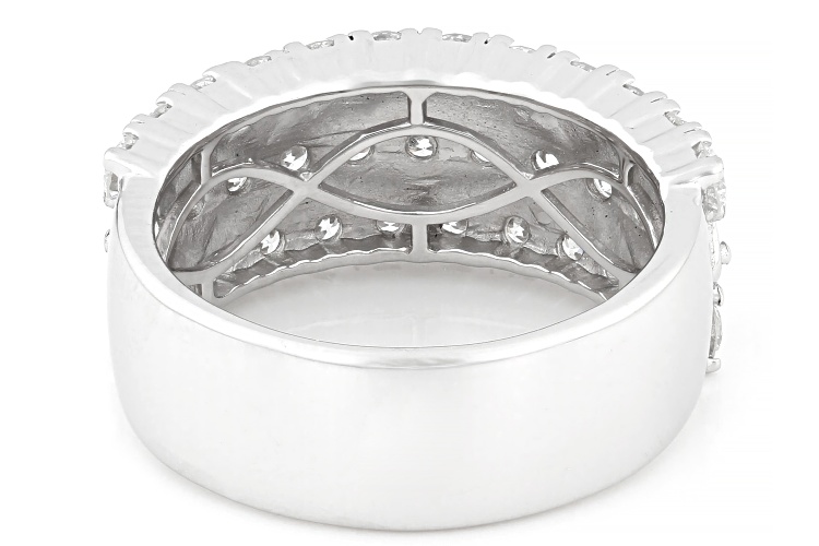 Prazana® Lab-Grown Diamonds 1.75ctw round white lab-grown diamond, rhodium over sterling silver wide band ring. Measures approximately 13/16"L x 5/16"W and is not sizeable. G-H color, VS clarity minimum.