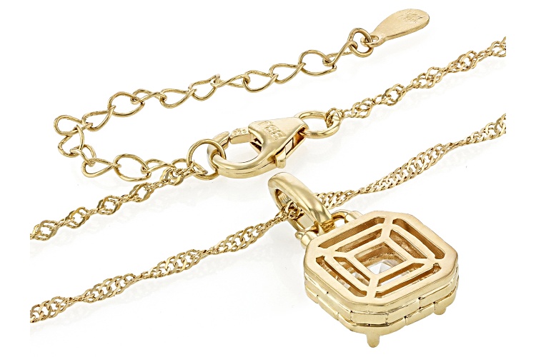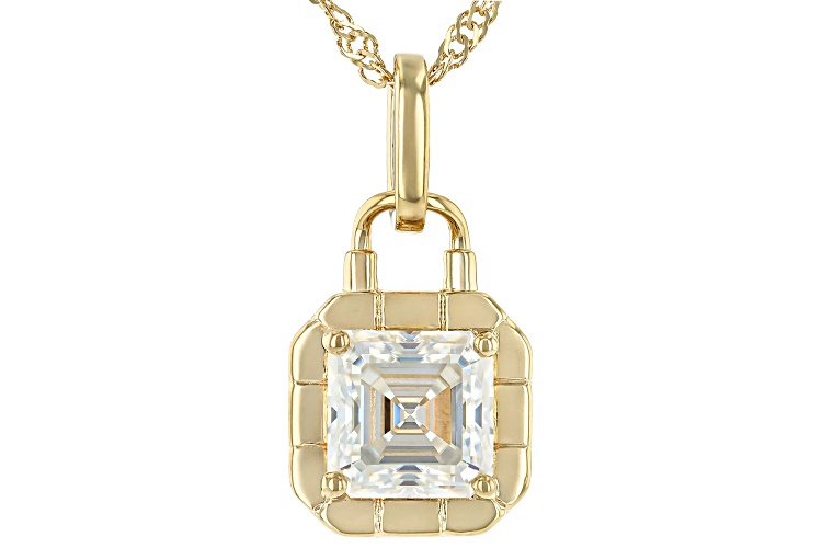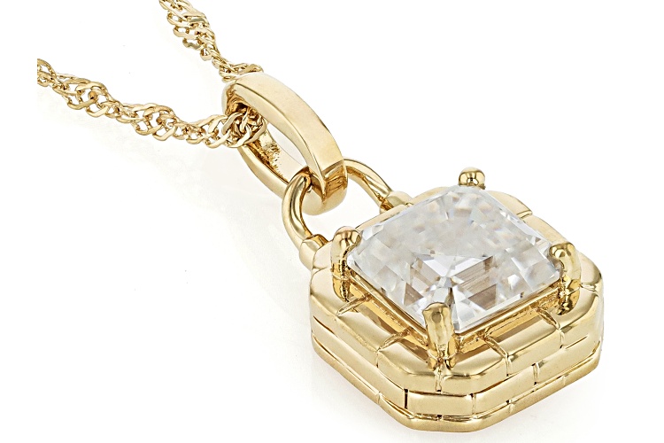 MOISSANITE FIRE® 2.96CT DEW ASSCHER CUT 14K YELLOW GOLD OVER SILVER PENDANT AND CHAIN
