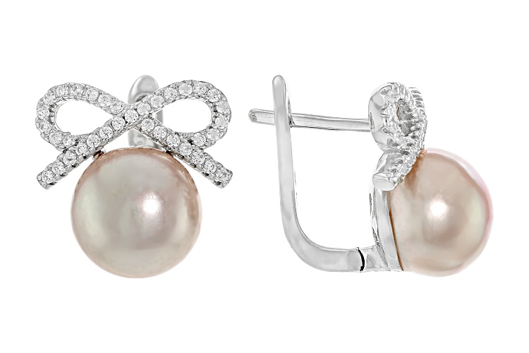 9mm Lavender Cultured Kasumiga Pearl With Bella Luce® Rhodium Over Sterling Silver Earrings