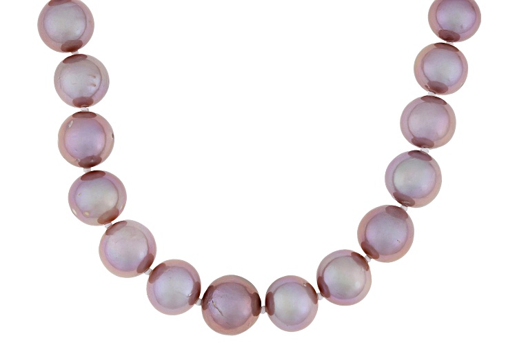 Genusis™ 9.5-11mm Purple Cultured Freshwater Pearl Rhodium Over Sterling Silver 20 Inch Necklace. Measures approximately 3/8 of an inch in width and has a bead clasp. Colors, shapes, and sizes may vary.