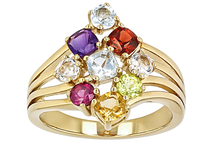 1.79ctw Multi Gemstone 18k Yellow Gold Over Sterling Silver Ring - Size 9