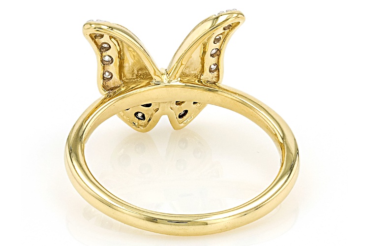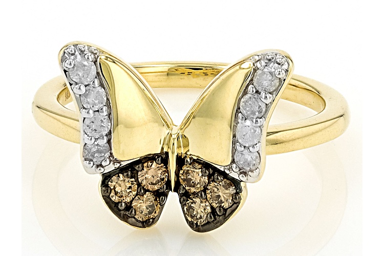 0.33ctw Round Champagne And White Diamond 10k Yellow Gold Butterfly Ring - Size 11