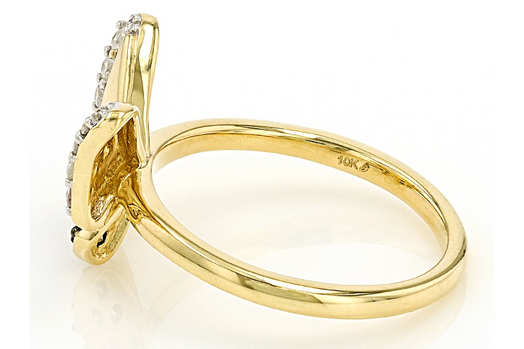 • 0.33ctw Round Champagne And White Diamond 10k Yellow Gold Butterfly Ring - Size 11