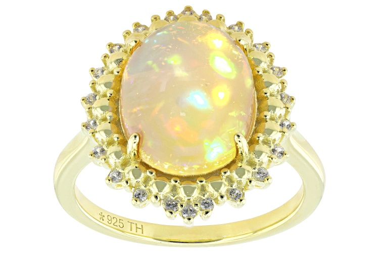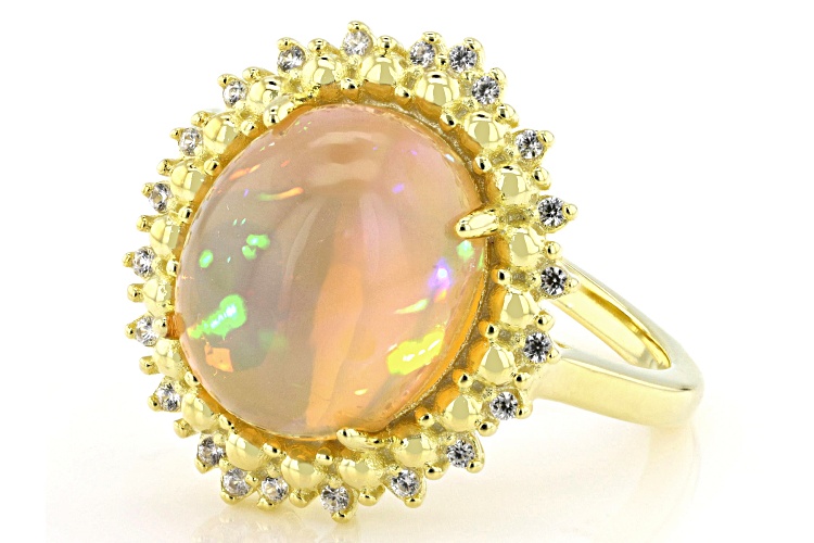 2.40ct Ethiopian Opal with 0.18ctw White Zircon 18k Gold Over Sterling Silver Ring - Size 8