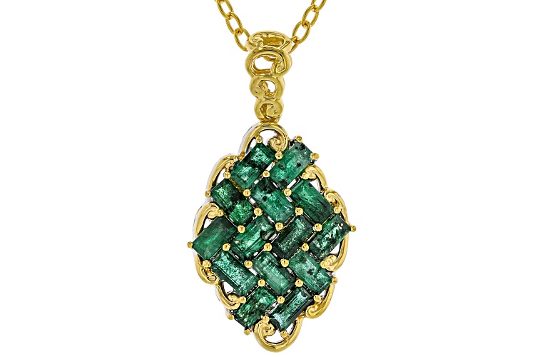 Gems En Vogue 1.65ctw Baguette Grizzly Emerald 24k Yellow Gold Over Palladium Sterling Silver Pendant With 18" Cable Chain. Measures Approximately 1.08"L x 0.57"W. Lobster Claw Clasp. 2" Jump Ring Extender.