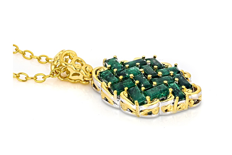 • 1.65ctw Baguette Grizzly Emerald 24k Gold Over Palladium Sterling Silver Pendant W/Chain