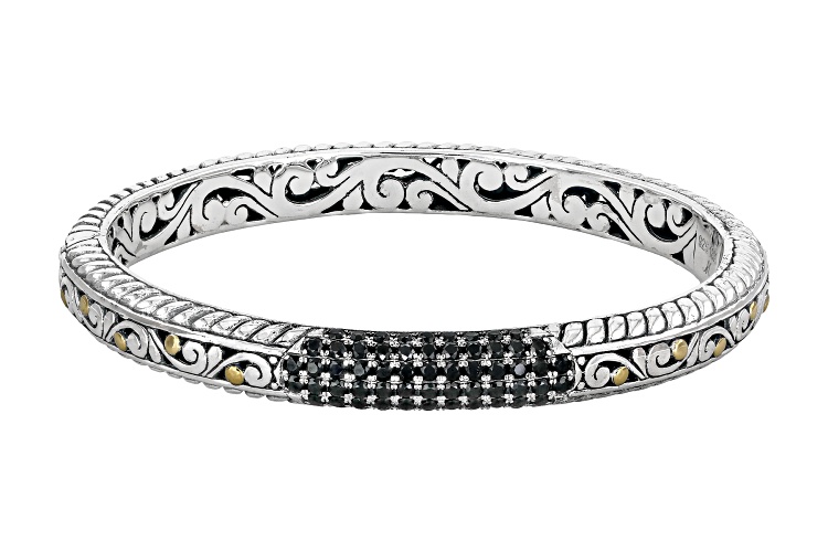 • Artisan Collection of Bali™ 2.77ctw Black Spinel Sterling Silver & 18K Gold Accent Bracelet - Size 7.5