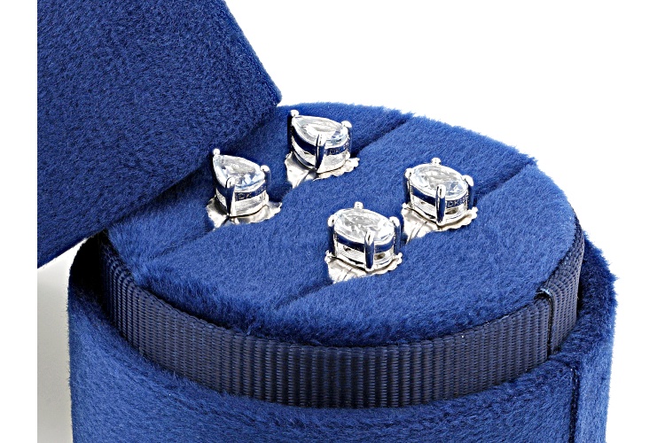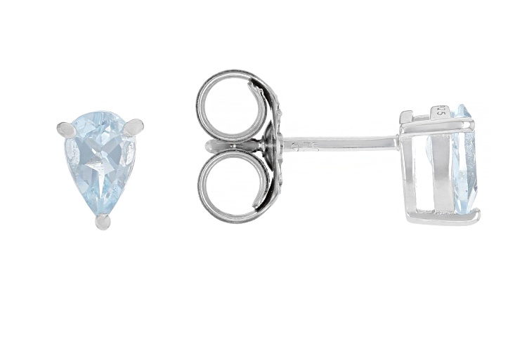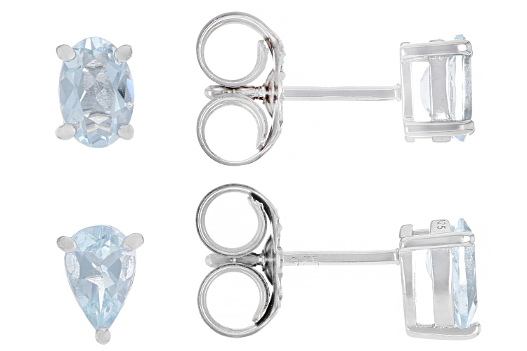 0.70ctw Oval Aquamarine and 0.60ctw Pear Shaped Rhodium Over Sterling Silver Earring Set with Box. Measures Approximately 0.26"L x 0.20"W. Push Backings.