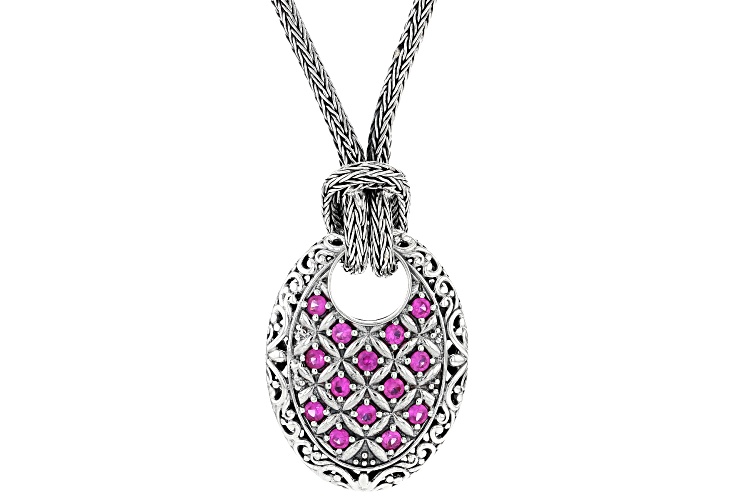 Artisan Collection of Bali™ 1.26ctw Round Lab Created Pink Sapphire Sterling Silver 2.5mm Tulang Naga Necklace. Measures Approximately 18.0"L x 0.96"W. Lobster Claw closure with 0.5" Extender. Oxidized.