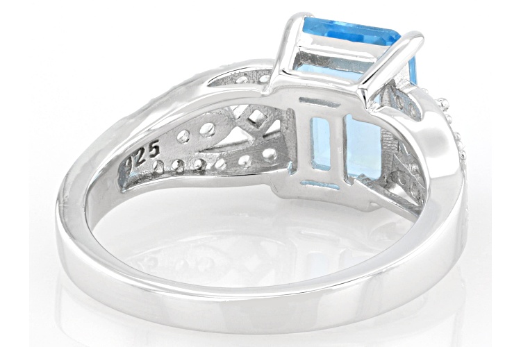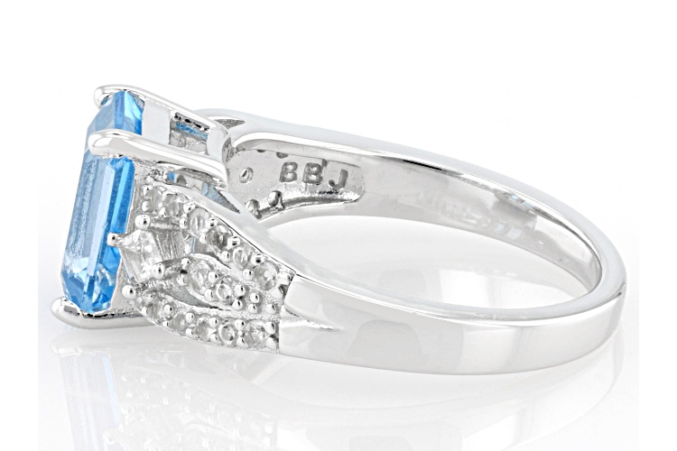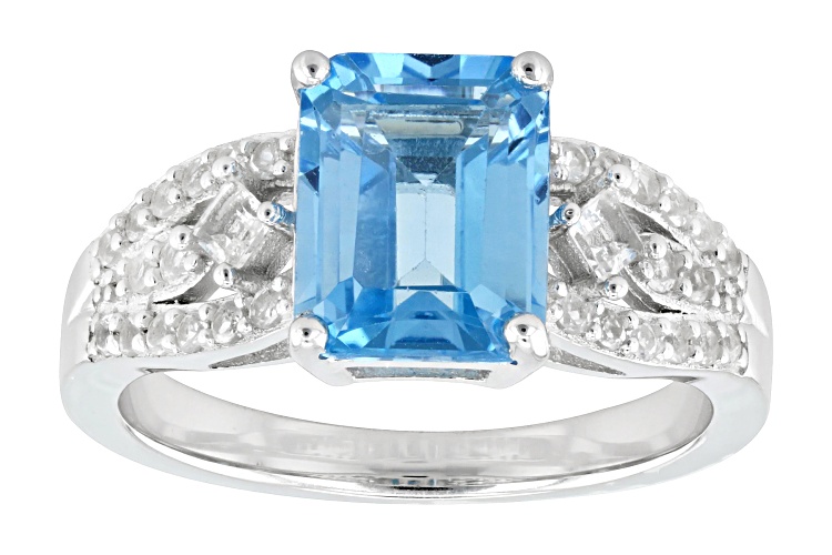 2.50ct Rectangular Octagonal Swiss Blue Topaz With 0.31ctw White Topaz Rhodium Over Silver Ring - Size 9