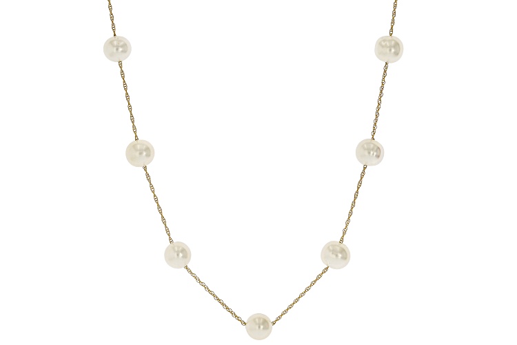 6mm White Cultured Freshwater Pearl 14k Yellow Gold 36 Inch Station Necklace - Size 36