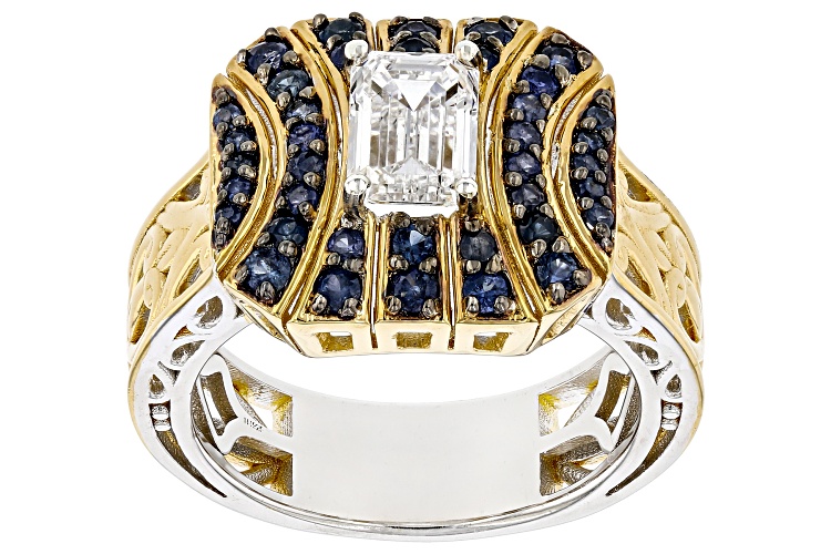 • 1.73ctw Lab Grown Diamond, Blue Sapphire Rhodium/24k Gold Over Palladium Sterling Silver Ring - Size 8