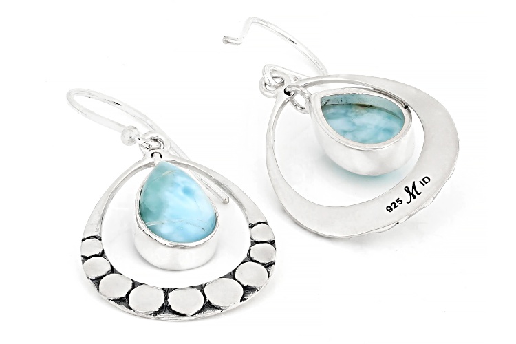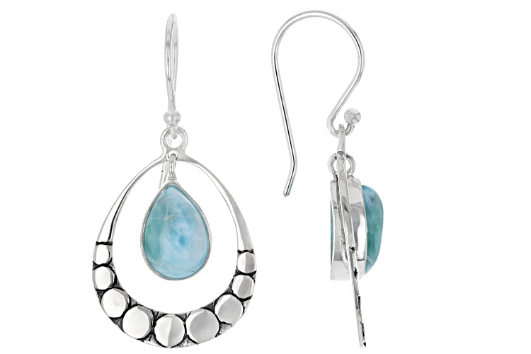 Artisan Collection of Bali™ 10x7mm Larimar Sterling Silver Open Design Earrings. Oxidized. Measures Approximately 1.41"L x 0.69"W. Fish Hook Backings.