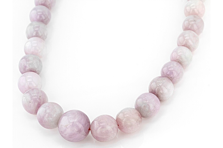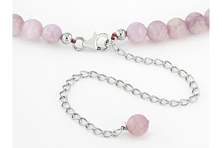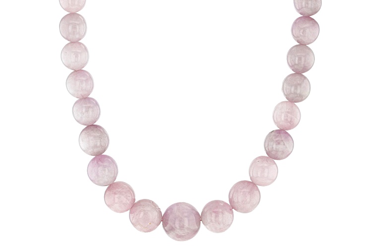 6-12mm Round Kunzite Rhodium Over Sterling Silver Graduated Beaded Necklace - Size 18