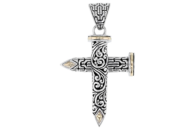 Artisan Collection of Bali™ Sterling Silver With 18K Gold Accent Nail Head Design Cross Pendant