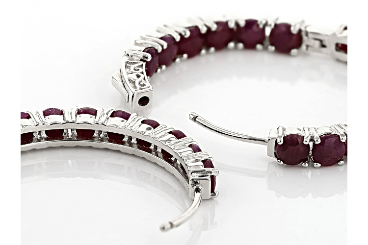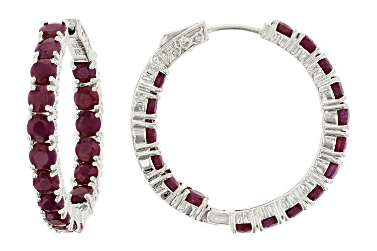 Pre-Owned 11.56ctw Round Indian Ruby Rhodium Over Sterling Silver Inside/Outside Hoop Earrings