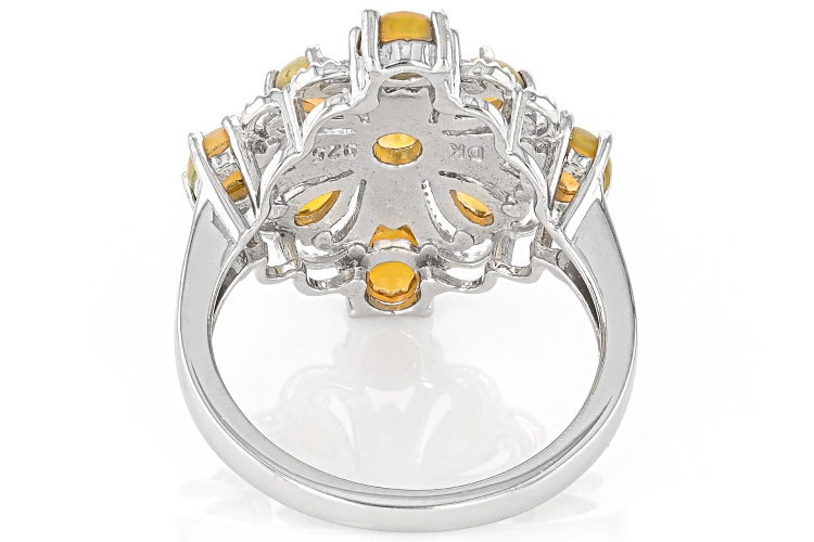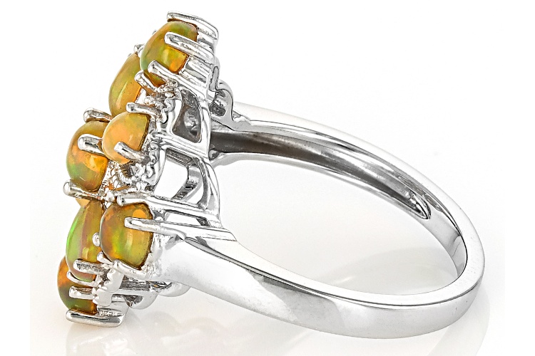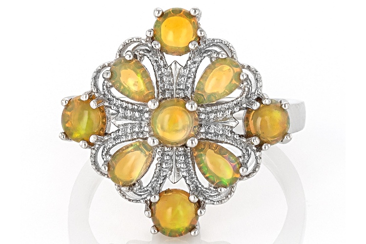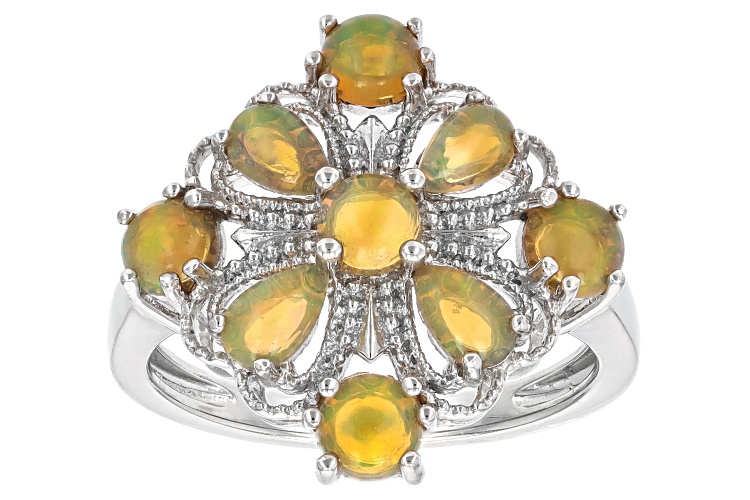 1.08ctw Pear Shape & Round Honey Color Ethiopian Opal Rhodium Over Sterling Silver Ring - Size 7