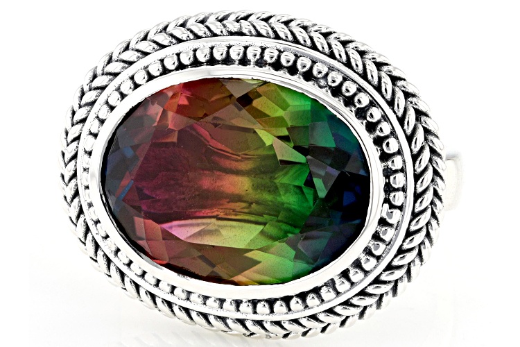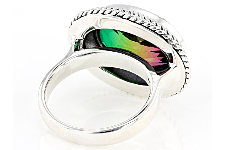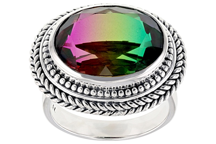 Artisan Collection of Bali™ 8.20ct Oval Shaped Watermelon Quartz Triplet Sterling Silver Ring. Measures Approximately 0.90"L x 0.74"W. Not sizeable. Oxidized.