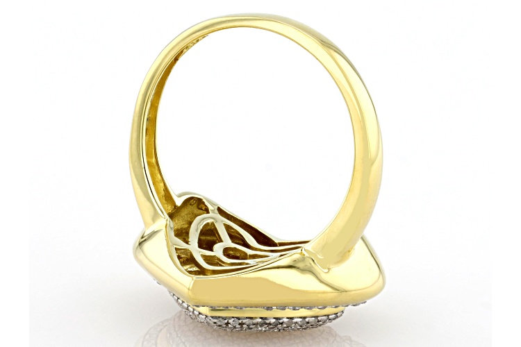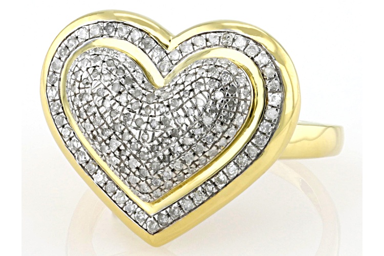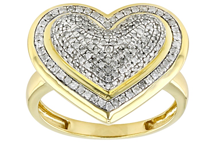 Engild™ 0.33ctw round white diamond, 14k yellow gold over sterling silver heart cluster ring. Measures approximately 3/4"L x 5/8"W and is not sizeable. Rhodium enhanced settings.