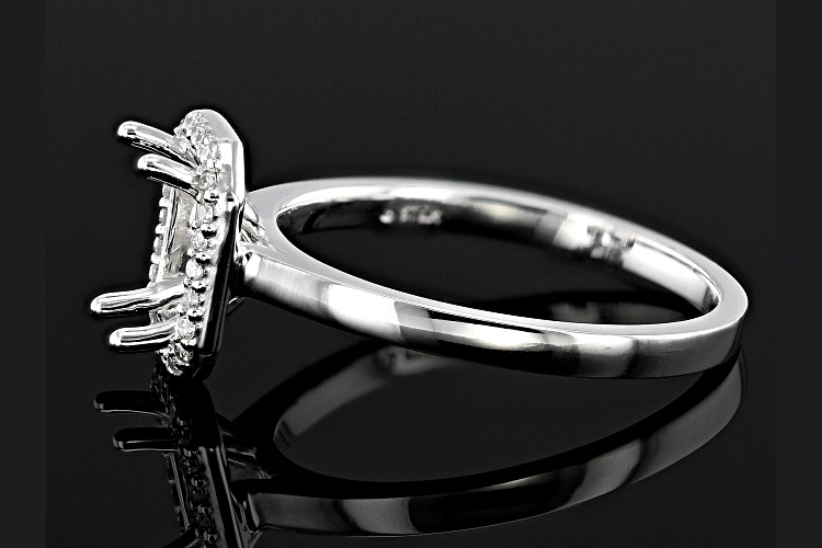 Sterling Silver 9x7mm Emerald Cut Halo Style Ring Semi-Mount With White Diamond Accent