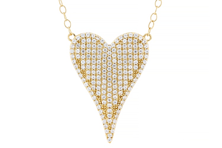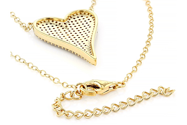 1.38ctw Round White Zircon 18k Yellow Gold Over Sterling Silver Heart Necklace. Measures Approximately 0.75"W. Lobster Claw Clasp. Accent stones primarily zircon.