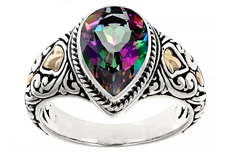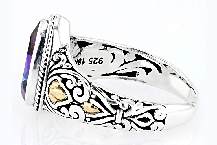Artisan Collection of Bali™ 2.20ct Magic Green™ Quartz Sterling Silver & 18K Gold Scroll Ring - Size 9