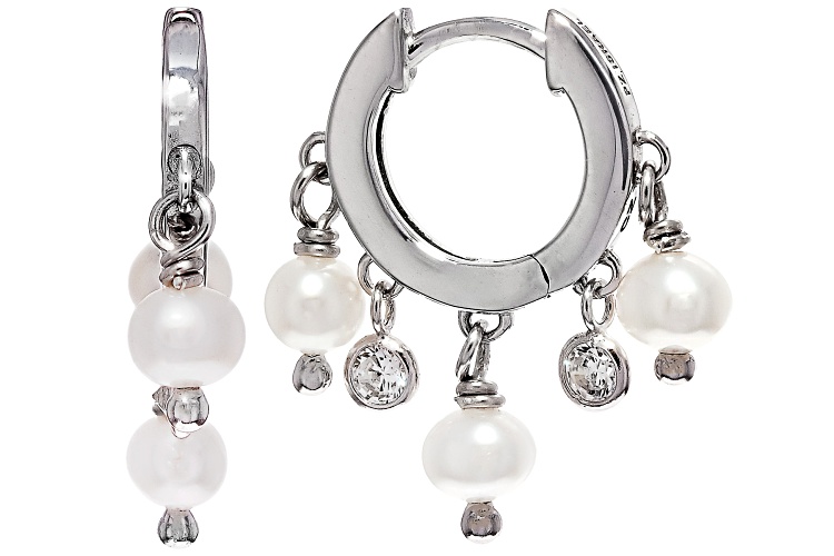 4mm White Cultured Freshwater Pearl With Bella Luce® Rhodium Over Sterling Silver Earrings