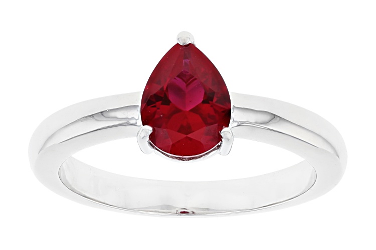 1.09ct Pear Shaped Lab Created Ruby Rhodium Over Sterling Silver July Birthstone Ring - Size 9