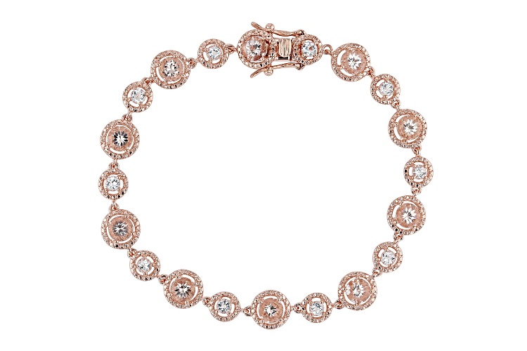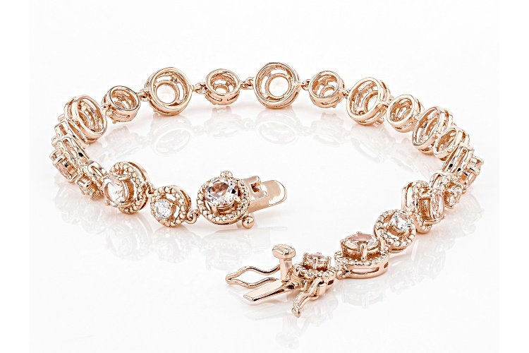 3.40CTW PEACH MORGANITE WITH 1.27CTW WHITE TOPAZ 18K ROSE GOLD OVER SILVER BRACELET - Size 8