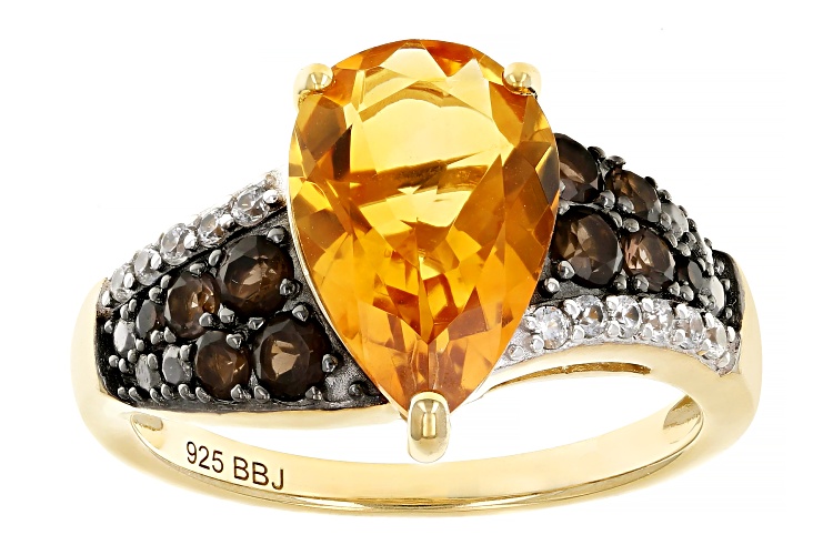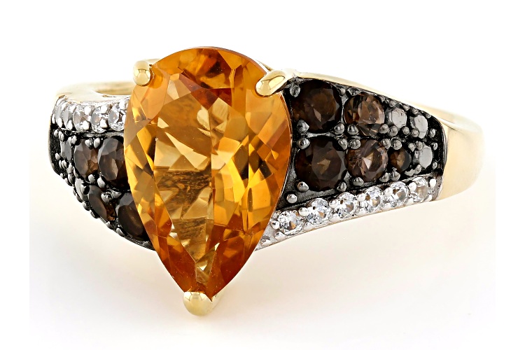 1.98ct Citrine With 0.32ctw Smoky Quartz & 0.09ctw White Zircon 18k Yellow Gold Over Silver Ring - Size 9