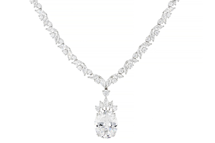 Vanna K™ For Bella Luce® 11.14ctw Oval, Marquis, and Round White Diamond Simulant Platineve® Tennis Necklace. Measures Approximately 17"L x 0.25"W with 0.63"L drop. Box Clasp. Diamond Equivalent Weight is 6.75ctw.