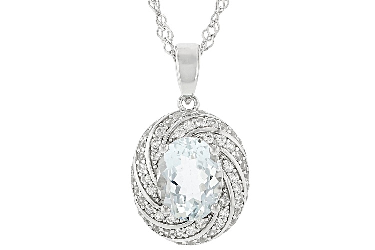 1.40ct Aquamarine with 0.85ctw White Zircon Rhodium Over Sterling Silver Pendant with Chain