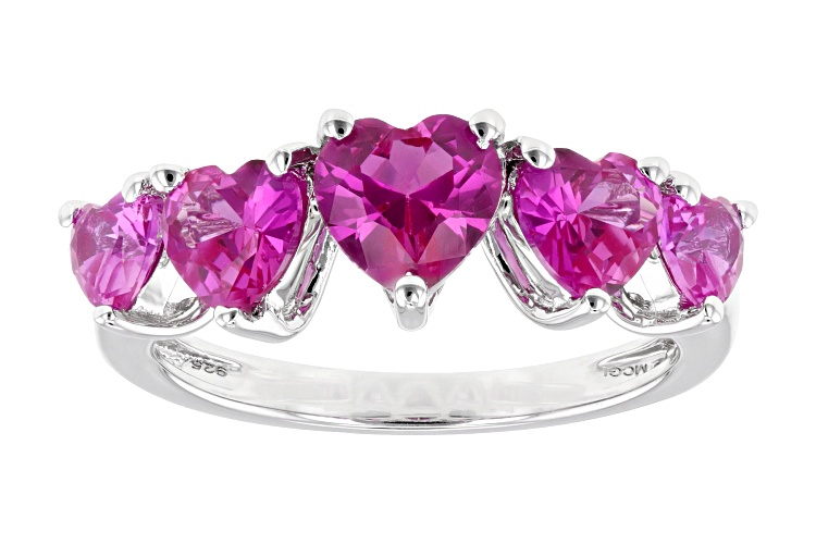 2.46ctw Heart Shape Lab Created Pink Sapphire Rhodium Over Sterling Silver Ring - Size 6