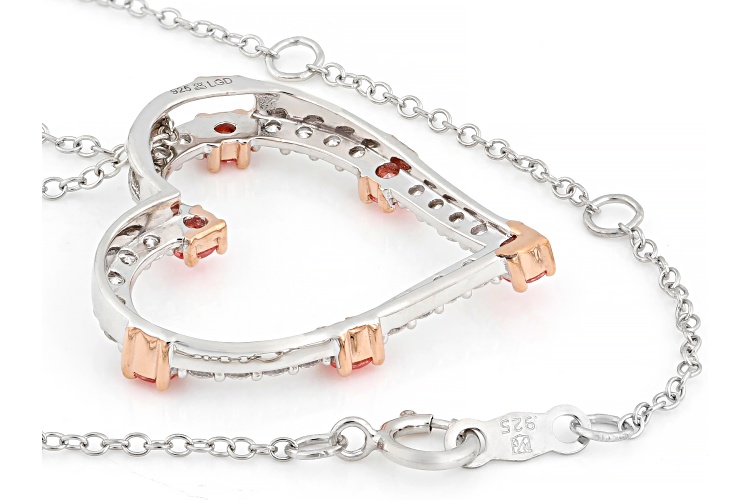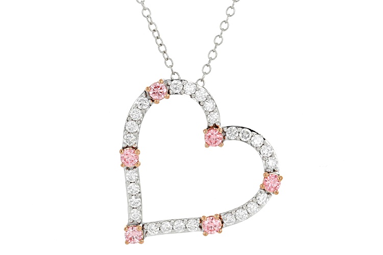 Prazana® Lab-Grown Diamonds 1.00ctw Pink and White Diamond Rhodium Over Silver Heart Pendant, H SI1