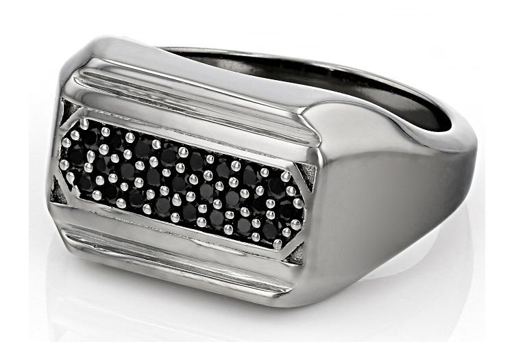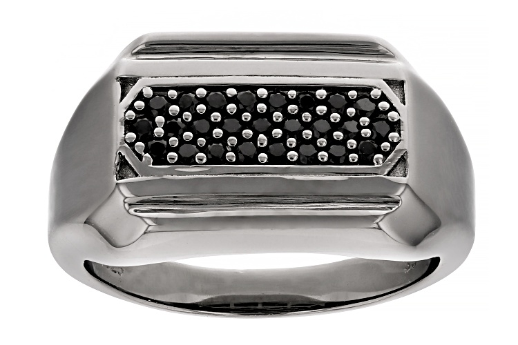• 0.48ctw Round Black Spinel, Black Rhodium Over Sterling Silver Men's Ring - Size 12